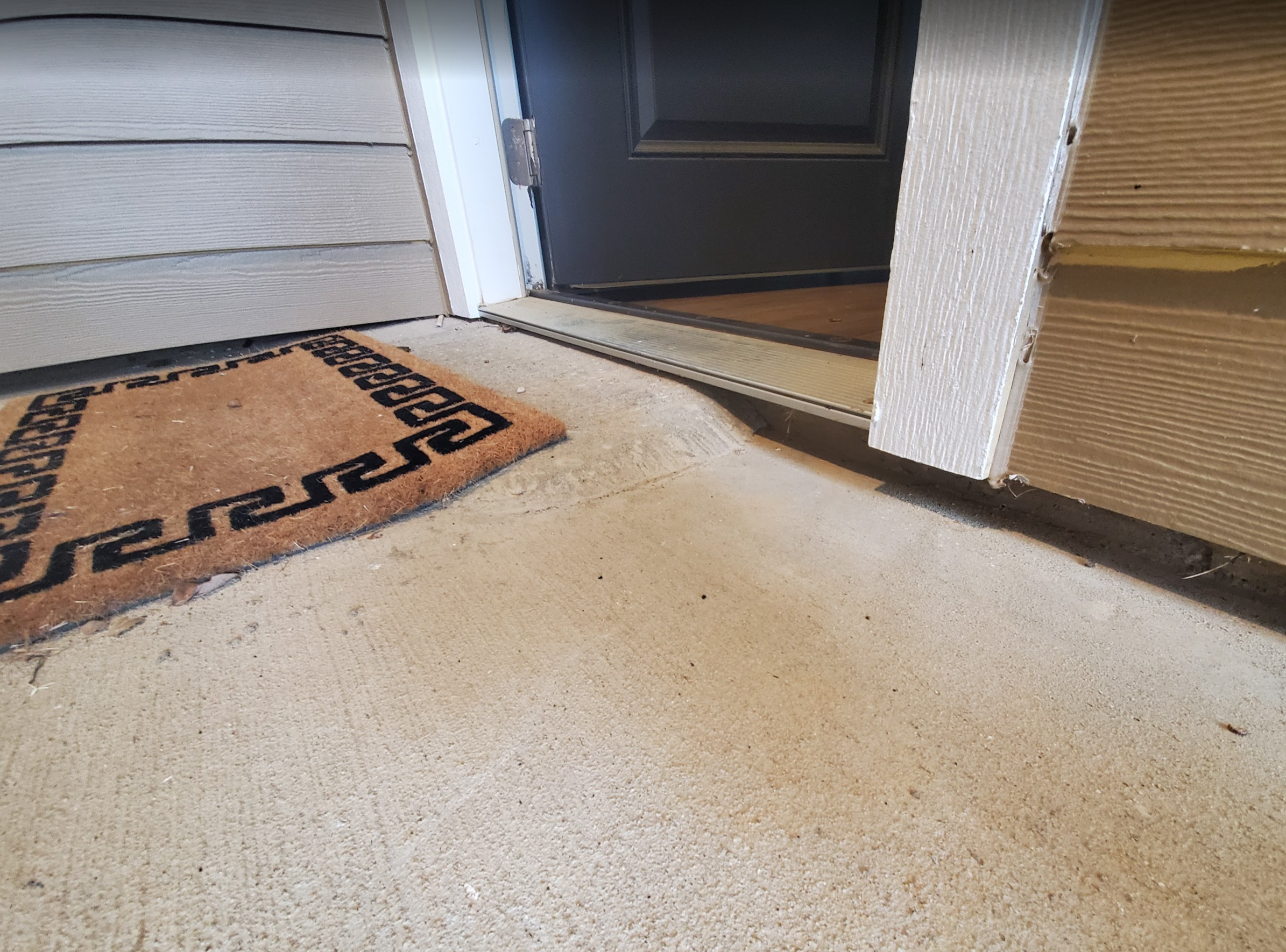 While this approach may address the height differential at the threshold, it often alters the adjacent maneuvering clearance at the door. The resulting surface can introduce slopes exceeding the allowable 2 percent limit in any direction, creating a new compliance issue.